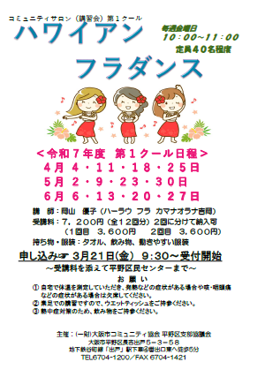 平野区民センター事務所までお問合せ下さい(コミュニティプラザ平野1階)