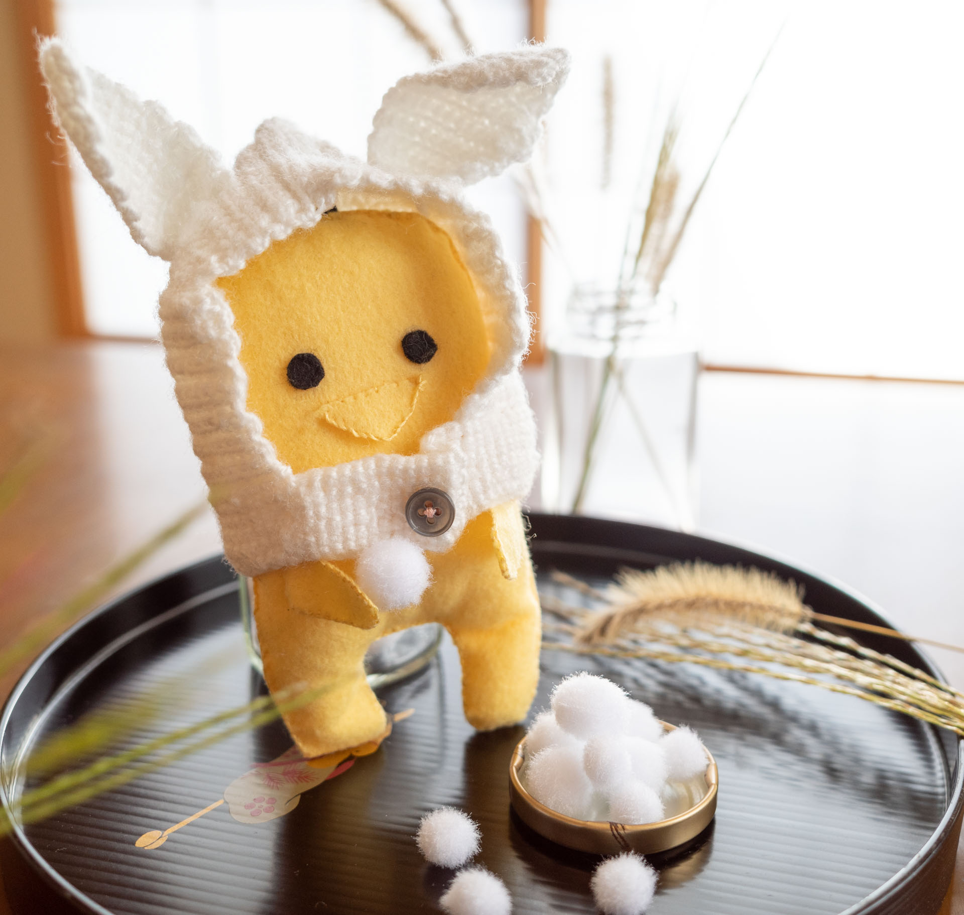 ピーチクパーチク話をしているところに現れます。頭の毛は、受信機になっていて常にアンテナをはっています。「今度、ぱーちくするお相手は、そこにいるあ・な・た」