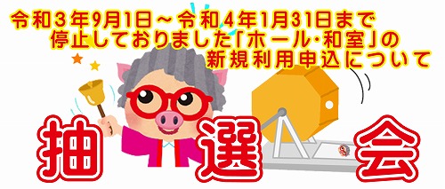 令和4年1月末まで停止しておりました「ホール・和室」の新規利用申込を再開いたします。