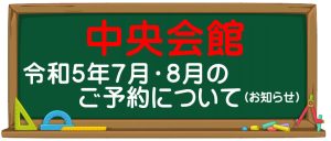 中央会館 令和5年7月・8月のご予約について(お知らせ)