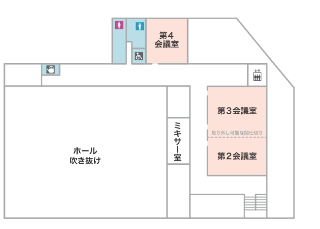 | 備考 | 第3会議室との仕切りを外して定員85名の部屋として利用可能 |