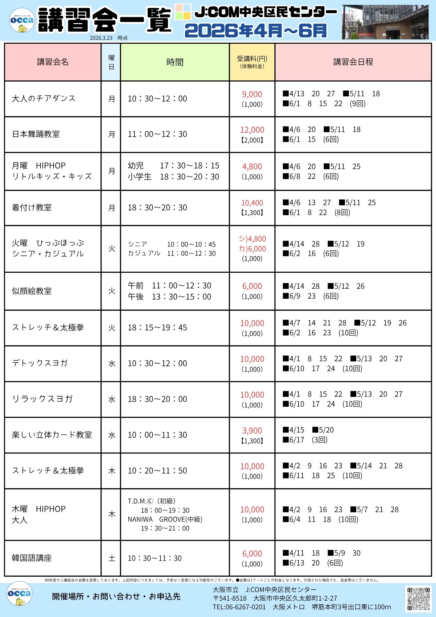詳細は、各講座のチラシもしくは一覧表にてご確認ください。