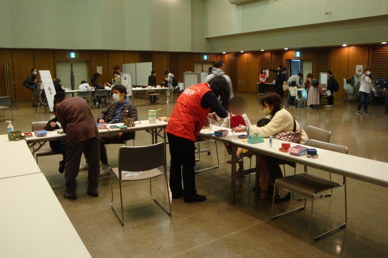 | 団体の協力を得て人形劇の発表、大型絵本の読み聞かせ、 手作り工作や昔のおもちゃ作り等のコーナーを実施 参加のみなさに喜んで頂きました。 参加者:64名 参加団体数:7団体 視覚障害・聴覚障害について知ろうと同時開催 |
