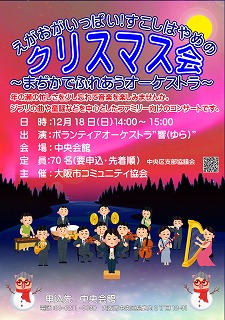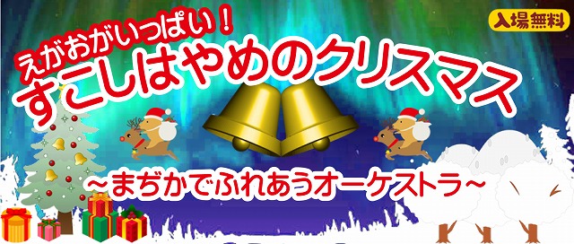 | オーケストラがかなでるクリスマスソングや 手あそびの楽しいクリスマス会を開催しました。 今回 約70名が参加されました。 楽しい時間を過ごされました。 |