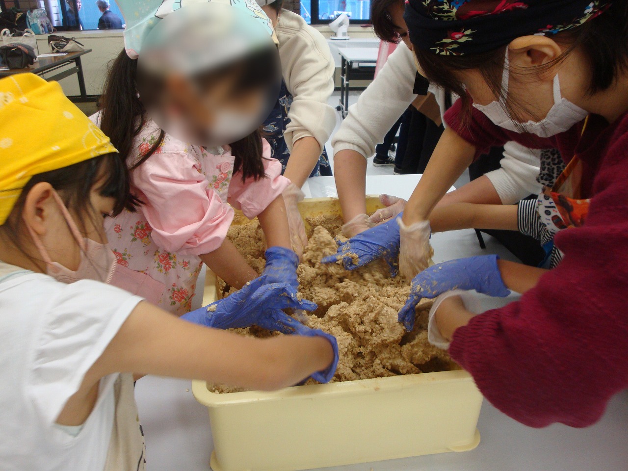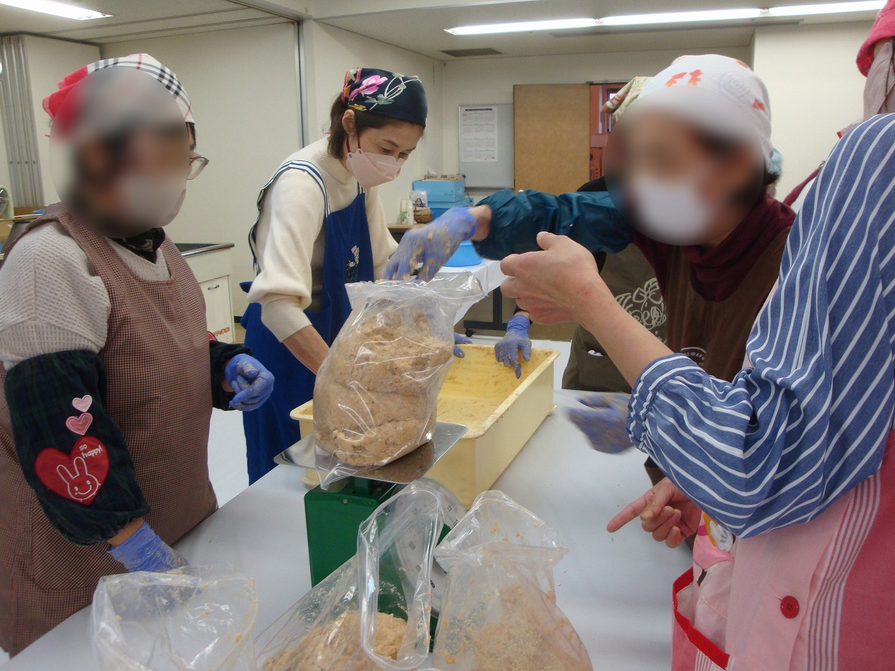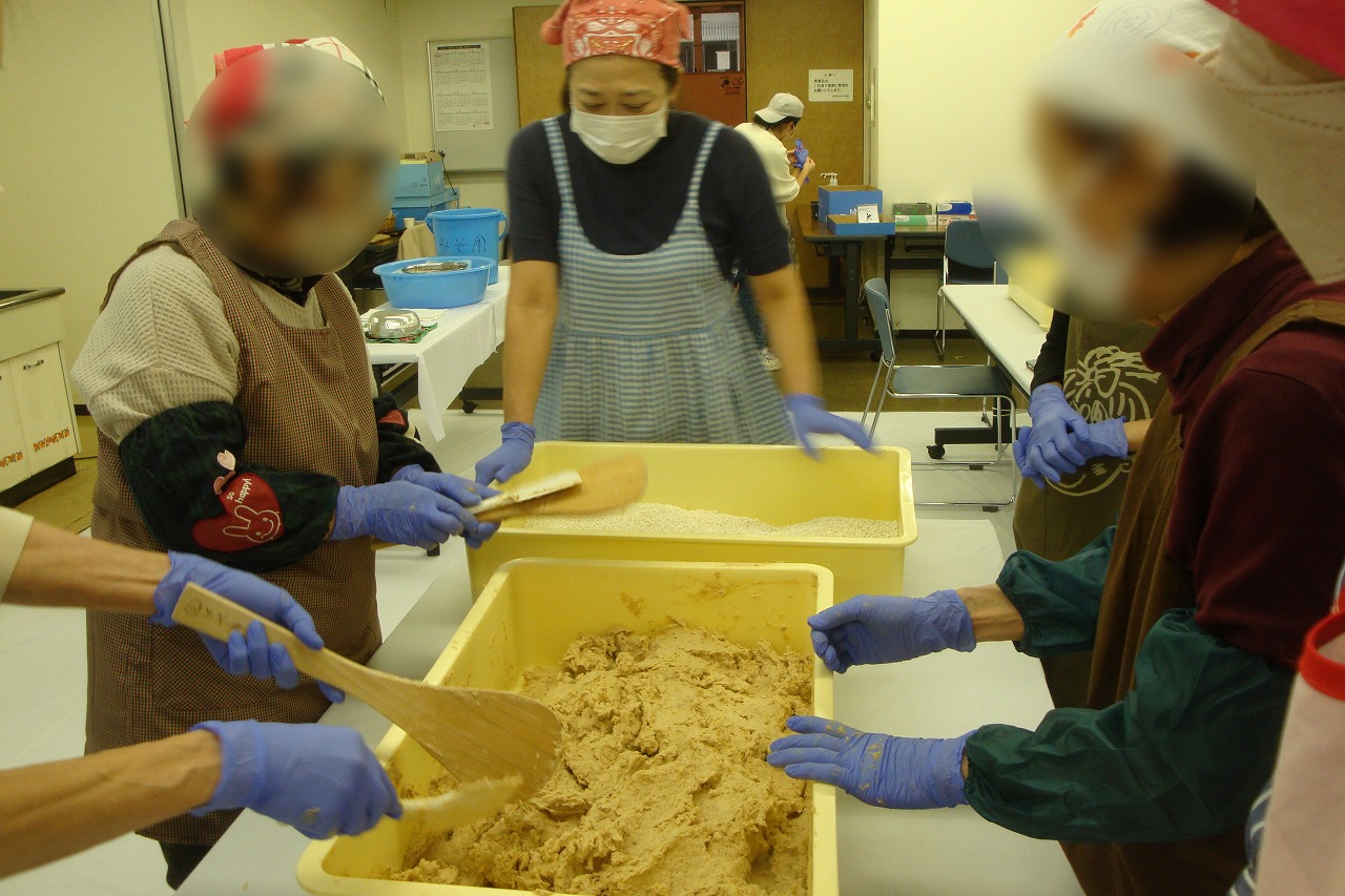 | 何時も大変人気の講習会です。 今年も大変盛況でした。 半年後の美味しいみそが楽しみです。 参加者数:100名 |