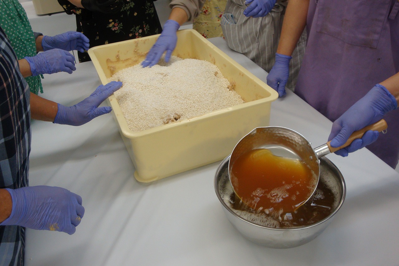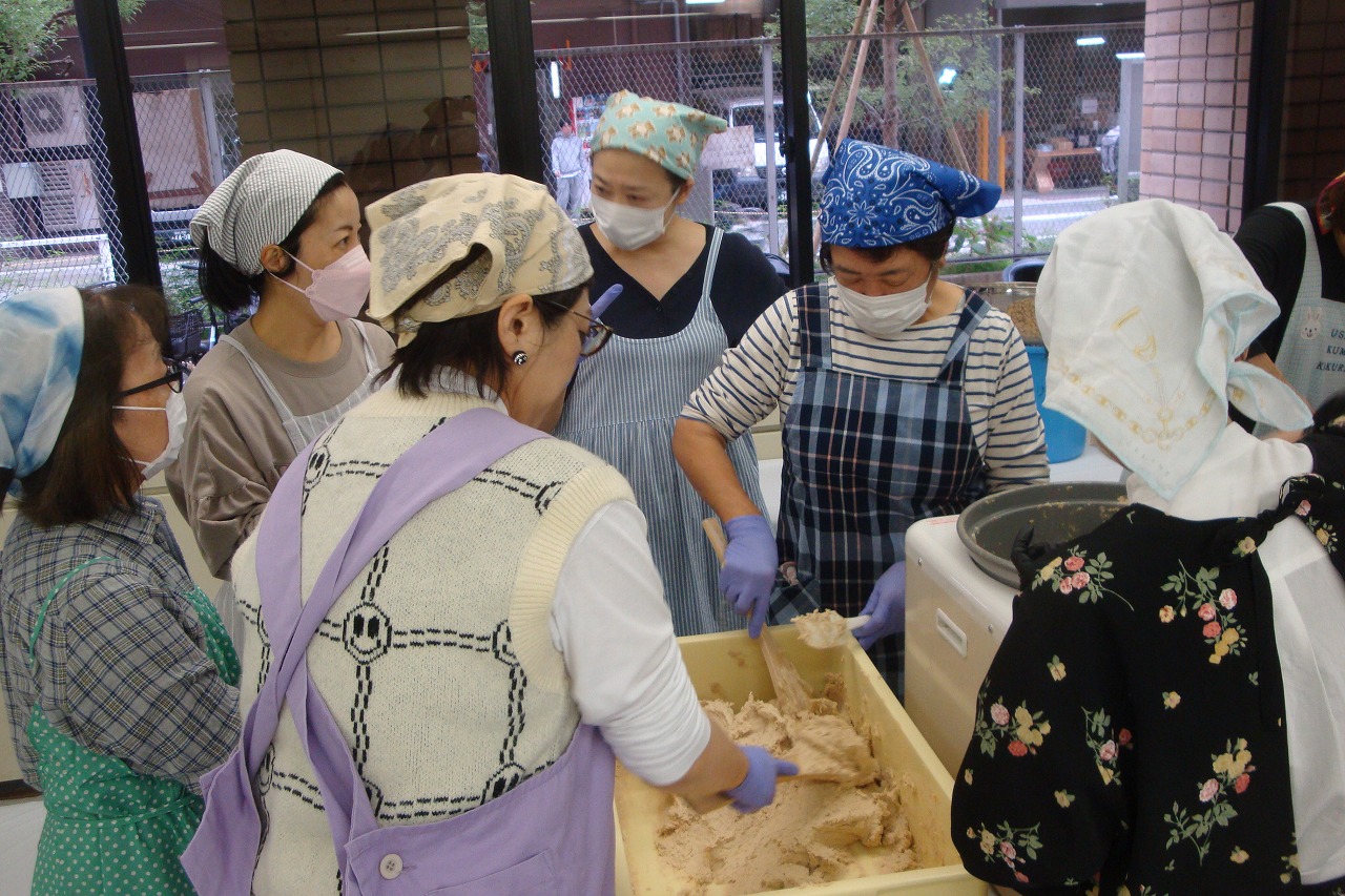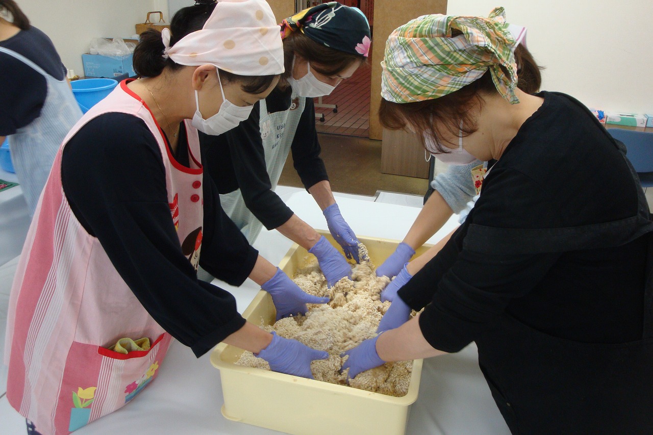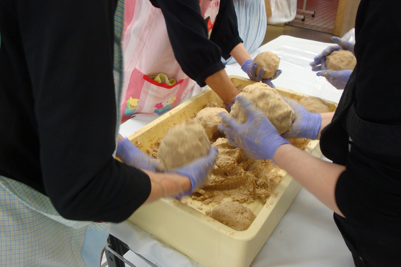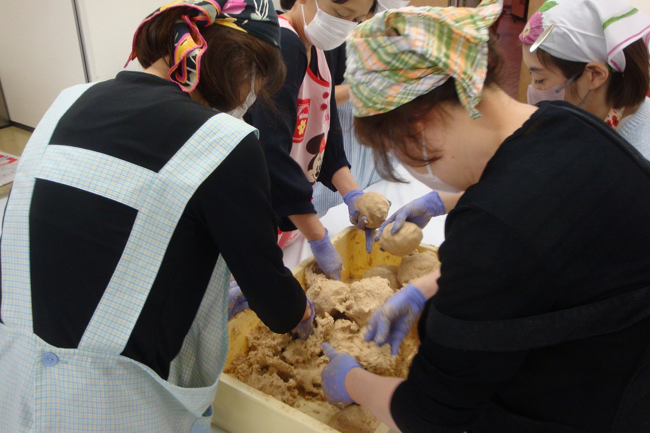 | 何時も大変人気のある講習会です。 今年度も大変盛況でした。 半年後の美味しいみそが楽しみです。 参加者数:100名 |