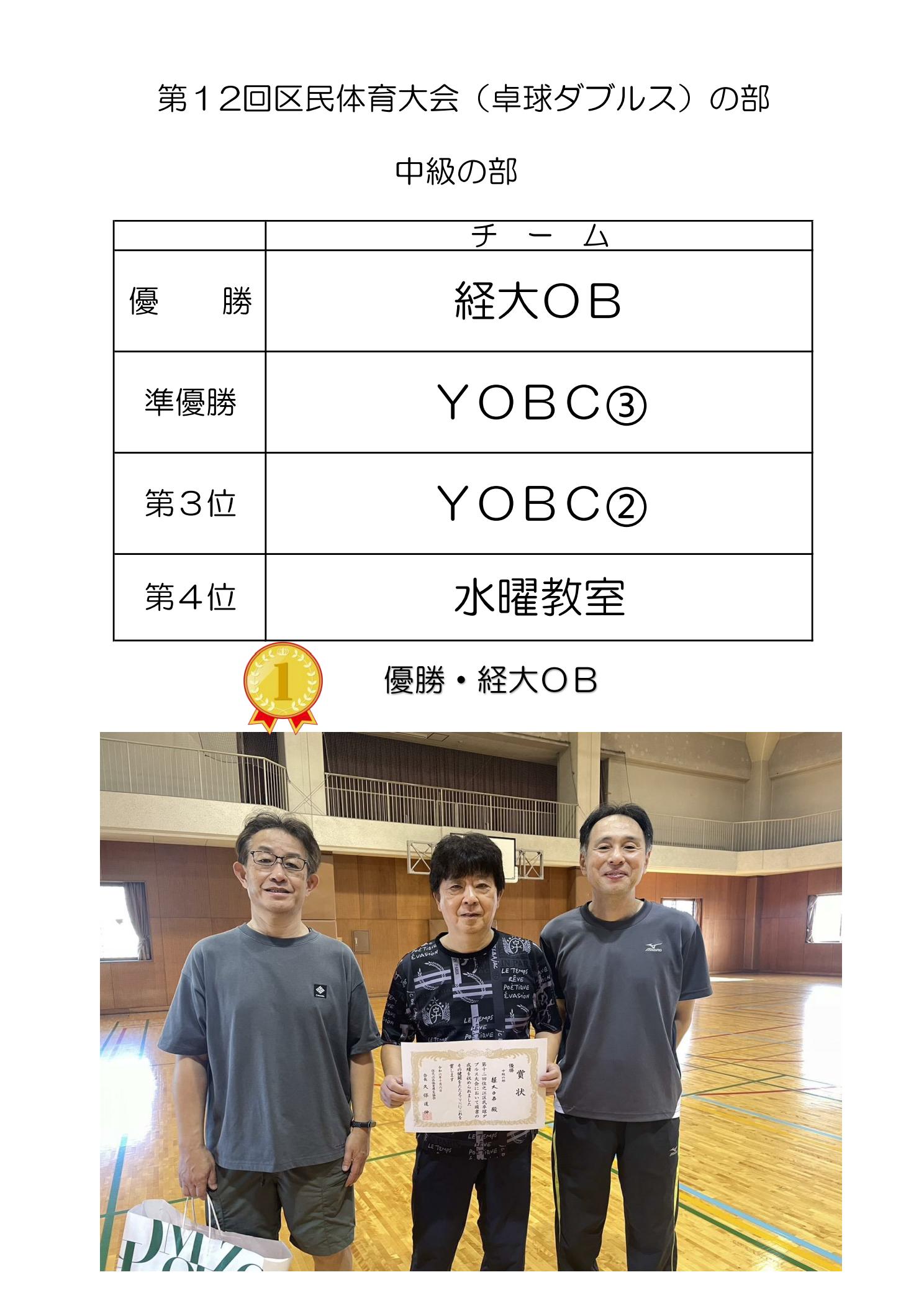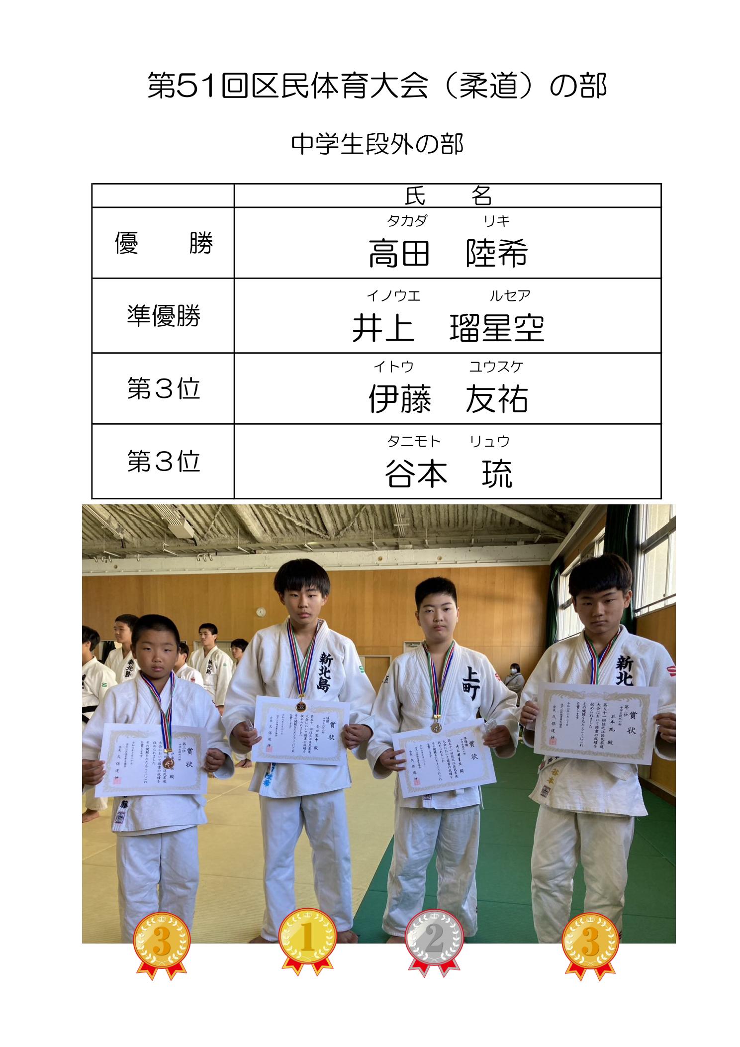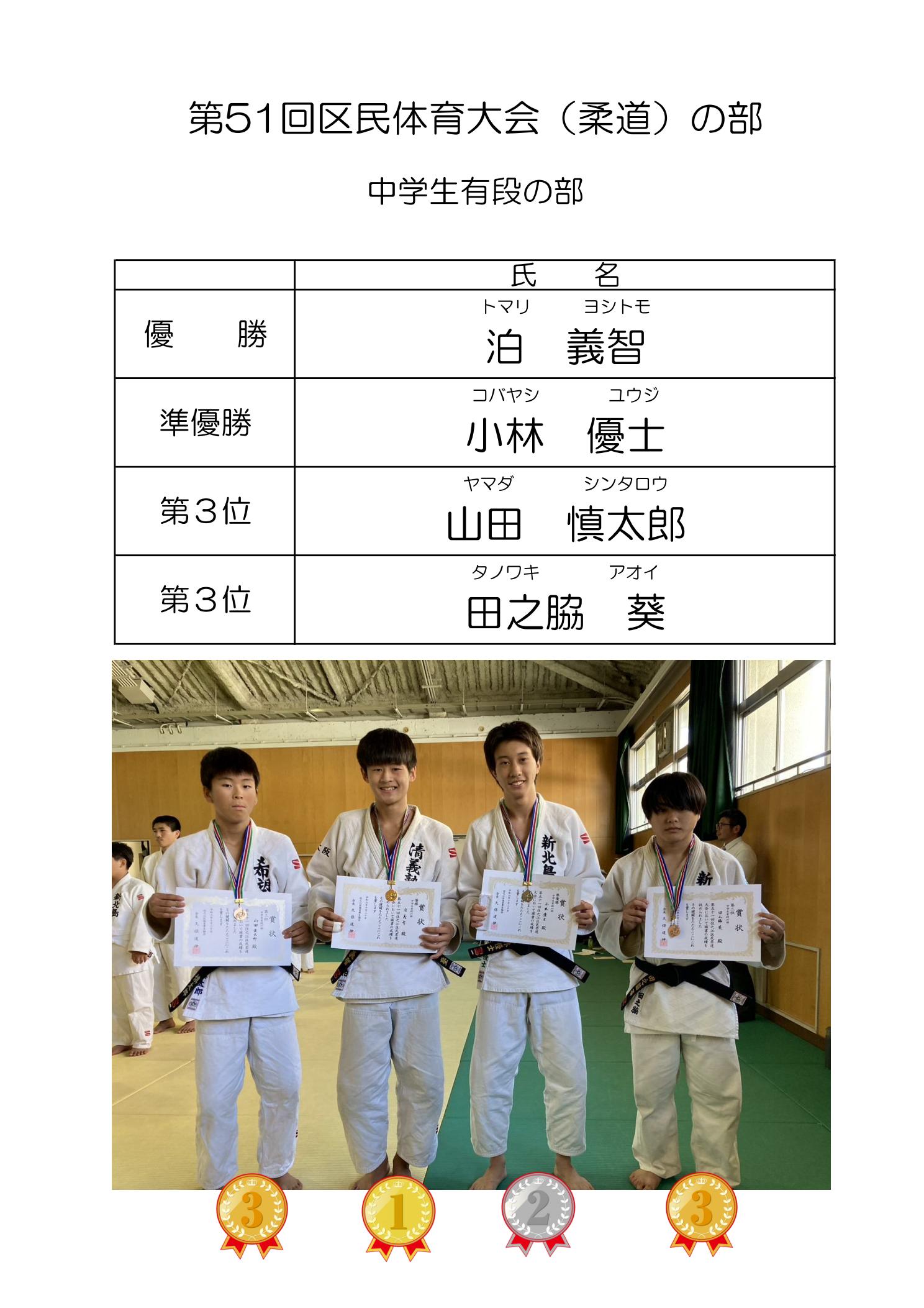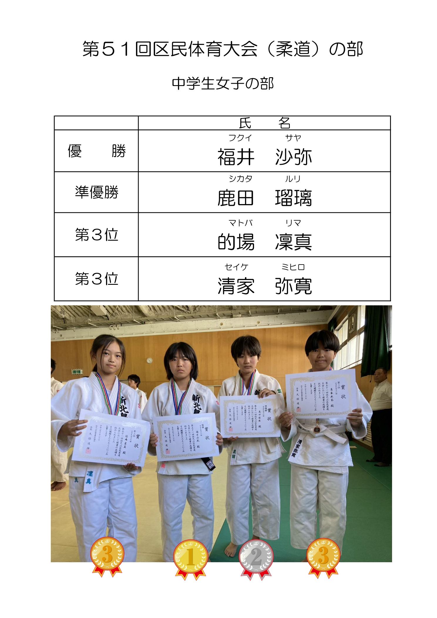 イベント 2024住之江区民秋季体育大会 結果 お知らせ どなたでも 住之江区支部協議会 令和6年10月に開催された 住之江区民体育大会の結果を報告いたします 皆さん素敵な笑顔です(^^♪ お知らせ 添付資料 10/6 卓球 初級① 10/6 卓球 初級② 10/6 卓球 中級 10/20 柔道 小学校1.2年 10/20 柔道 小学校3.4年 10/20 柔道 小学校5.6年 10/20 柔道 中学校女子 10/20 柔道 中学校段外 10/20 柔道 中学校有段 10/20 柔道 一般 初段・二段 10/27 硬式テニス 女子 10/27 硬式テニス 男子 10/27 剣道 小学校3.4年 10/27 剣道 小学校5.6年 10/27 剣道 中学校女子 10/27 剣道 中学校男子 10/27 剣道 三段以上の部