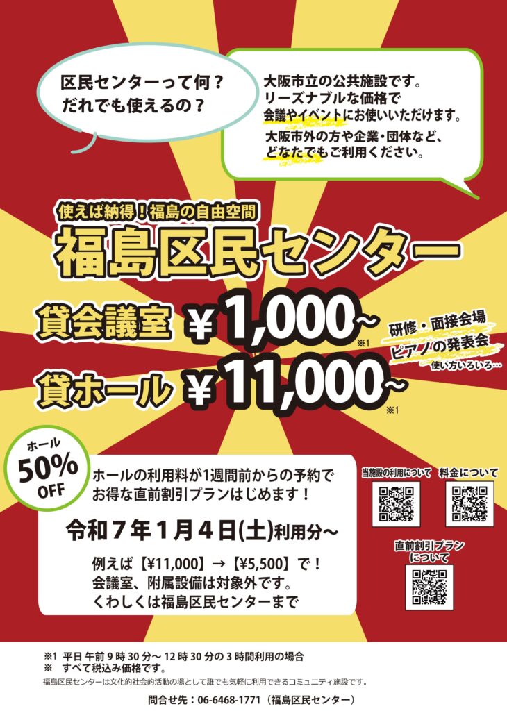福島区民センターのホール直前割のご案内【令和7年1月4日開始】