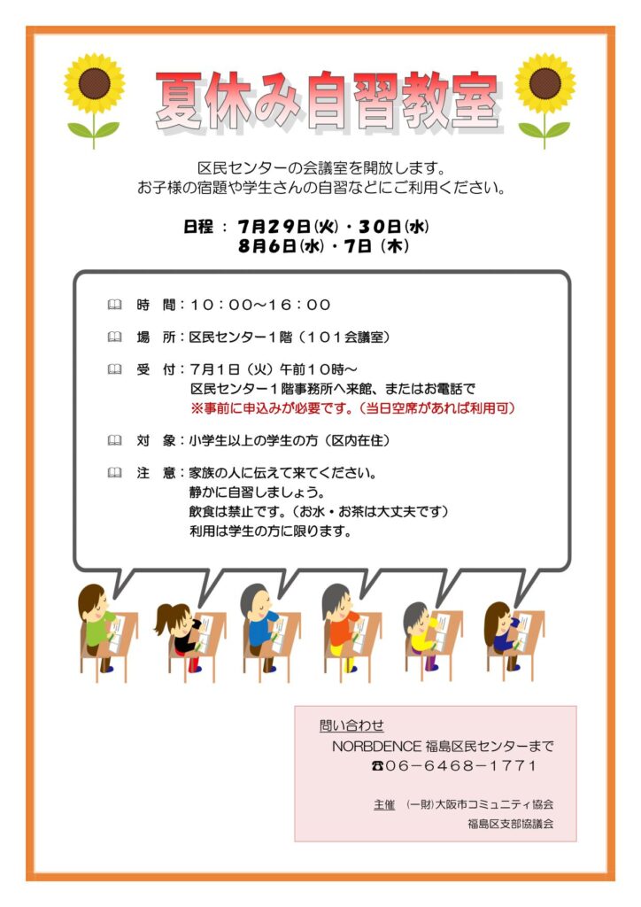 R7 夏休み自習教室利用のご案内(NORBDENCE福島区民センター)