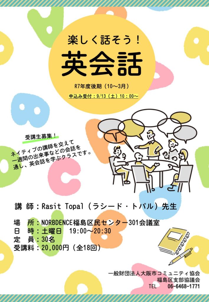 英会話を学ぶクラスです。(中学校で習うレベルです。)