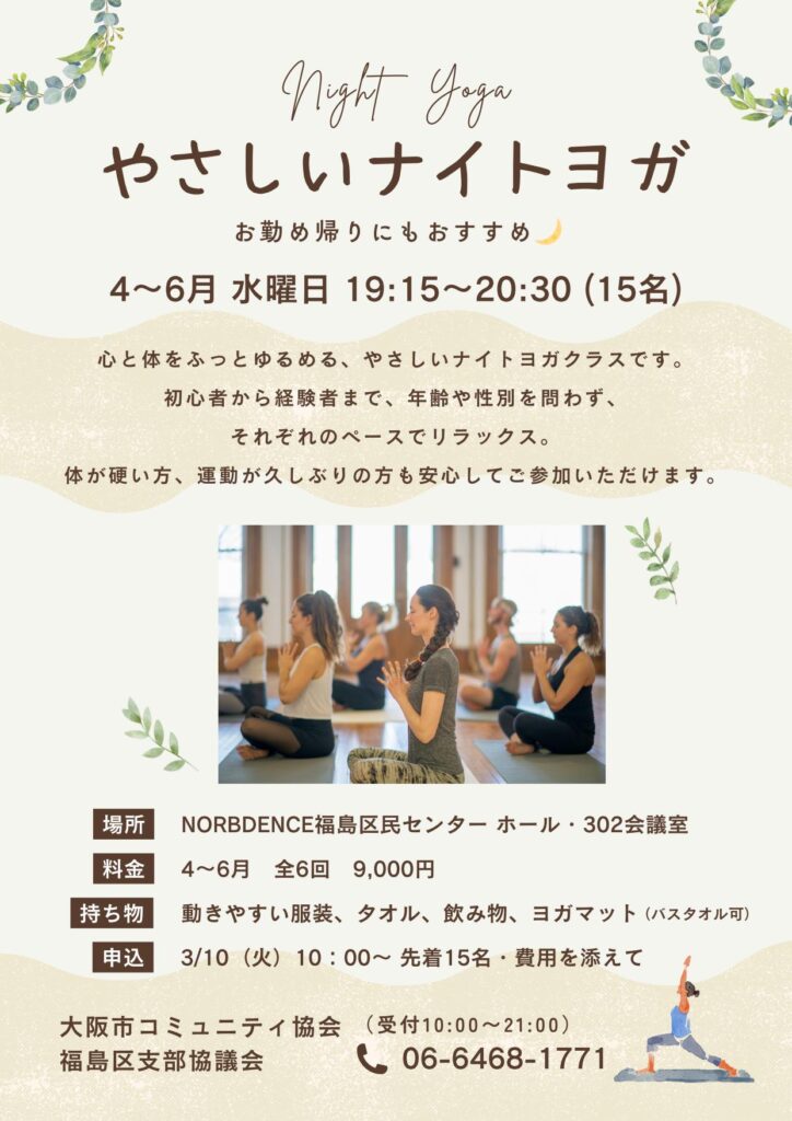 (R8NEW)【4~6月講座】やさしいナイトヨガ