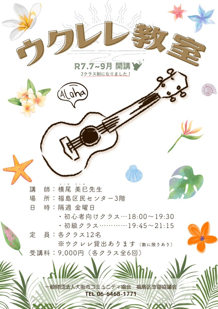 ウクレレ教室7・8・9月(初心者クラス/初級クラス)