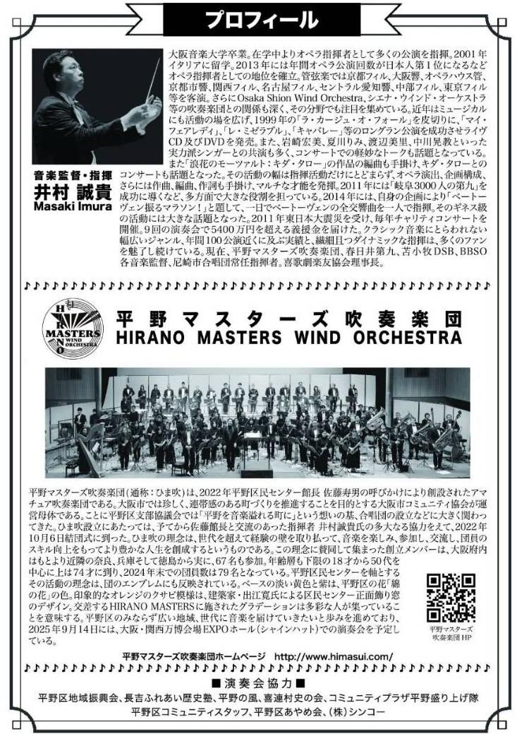 主催:(一財)大阪市コミュニティ協会平野区支部協議会、平野マスターズ吹奏楽団