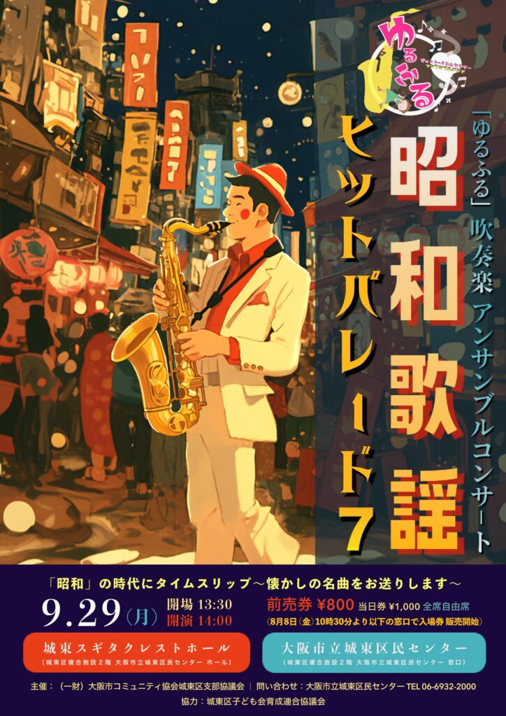 城東区民センター吹奏楽アンサンブルバンド「ゆるふる」による昭和歌謡をテーマにしたコンサートです。