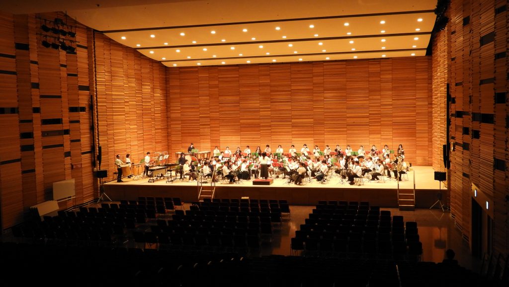 ホール(吹奏楽演奏会。反響板・側板と天板を使用)
