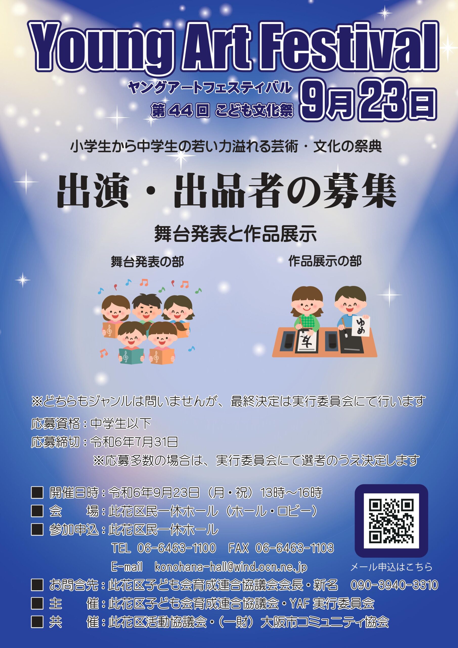 舞台発表の部/作品展示の部 ※応募多数の場合は、実行委員会にて選考のうえ決定します