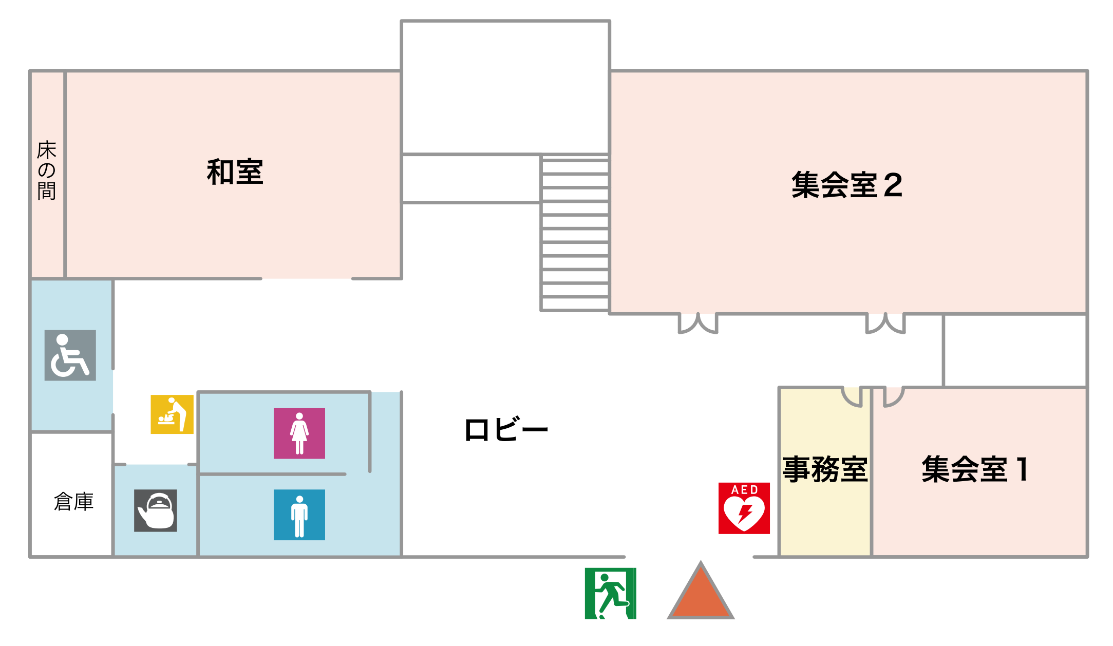 | 使用例 | 講演会、式典、集会 楽器の演奏、合唱、ダンスの練習並びに発表会など |