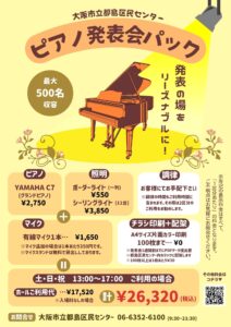 大阪市立都島区民センターのホールでピアノの発表会はいかがですか?