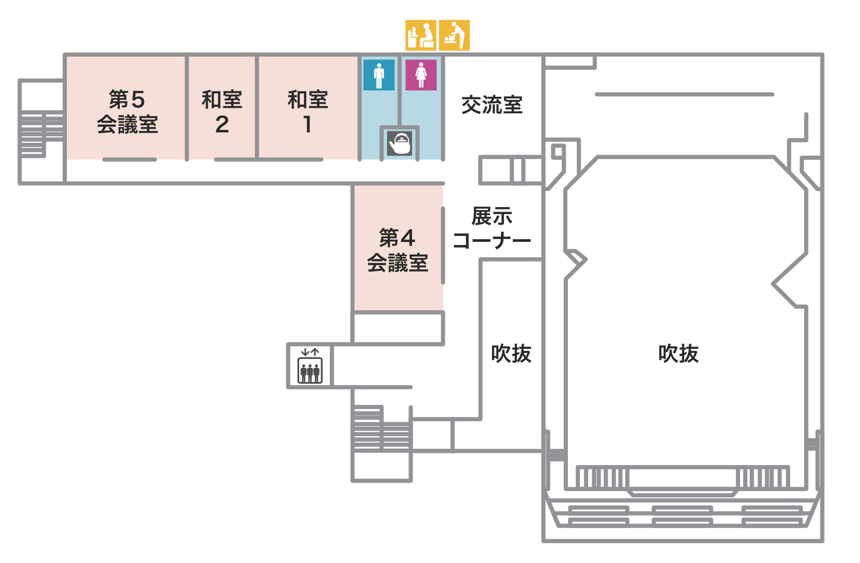 | 備考 | 机6台(サイズW180×D60×H70)椅子18台 演劇など大声を出す場合や楽器演奏、コーラス練習等は使用できません。 |