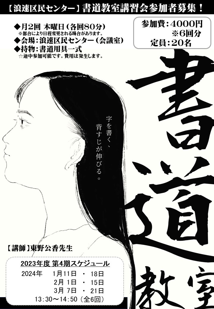 成人の方対象。 大筆が中心の書道教室です。 芸術書と実用書の両方を取り入れ 世界で一つだけの作品づくりを しています。 初心者の方でも受講できます。