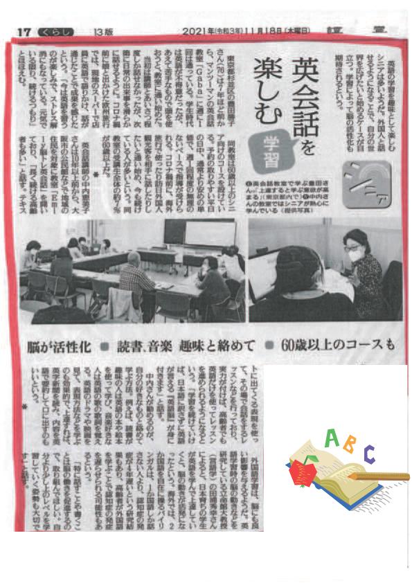 読売新聞 2021年11月18日 朝刊 「英会話学習を楽しむ」