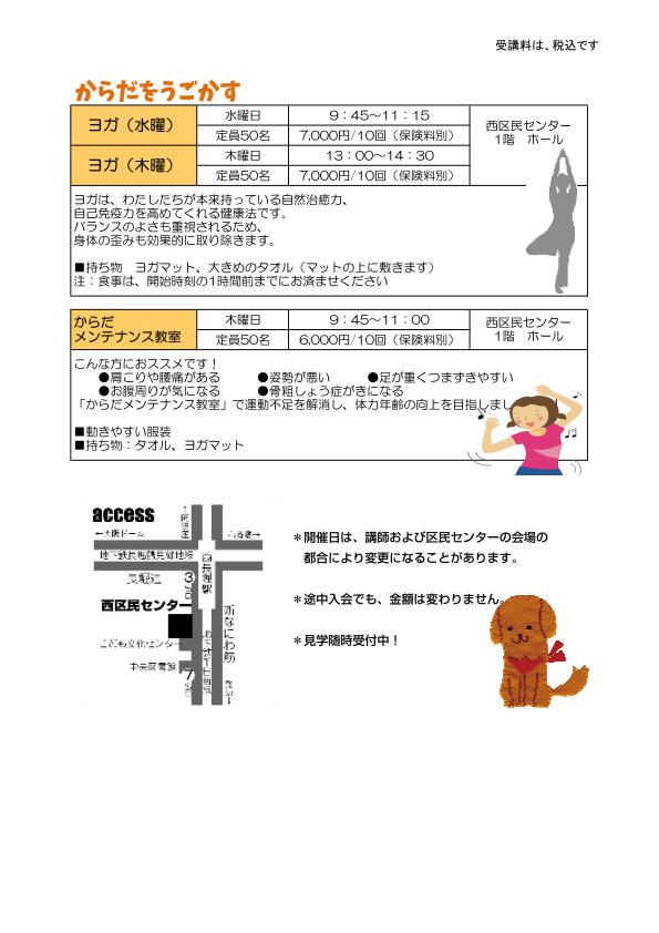 「からだメンテナンス教室」「木曜日ヨガ」3クール目受付中」