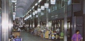 日本火災ビルによる新生 ビジネス街 、それも第−級の四つ橋筋のすぐ西側の通りに面するこの日用品商店街は、 現在の市中では最も地価の高い地域の−つに店舗を構えている。商店街西側の経営者の大半が自分の地所で商い、日本火災隣接の東側の商店と−体となって見事に活性化されたのは、平成二年のことである。 このあたりは非戦災地域で 「水の都」時代の大阪の風情が色濃く残されていて、誰いうとなく江戸堀三角地帯の俗称が冠せられていた。 それほど戦争以前の建物が残存していて、大阪の都心では一味ちがう雰囲気を漂わせた町を持続させていた。 付近に旧くからの居住者が多いこともあり、戦後復興期の中核地域であったため、自然に地域の日常生活に欠かせない市場が必要となつたが、この一角に生活物質を扱う商店が集まったのは付近の江戸堀市場やここ玉水商店街の店主たちの努力の賜物であった。 昭和六十二年に始まる日本火災大阪支店の建替えは、単に、−企業のビルの高層化ではなく、近隣地域を総合的に再開発するものとなり、これらの小売り商店の新生を求めるものとなった。 それは大正十一年に大林組により建てられた日本火災ビルを、隣接地主から有償提供された土地と合わせて高層化し、西側の町筋に在来の風情を残すことによって肥後橋商店街として再生することであった。 |