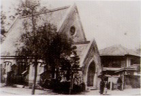 このキリスト教の両教会は、プロテスタント基督教会であつて、プロテスタントの大阪における伝道の端緒は米人ウイリアムス師に始まる。明治三年三月、彼は川口居留地の自宅に礼拝堂を設け、同五年米国から来任した宣教師アーサー・R・モリスが聖テモテ学校を興す事により川口基督教会の前身である聖テモテ教会が誕生する。明治二十四年に川口教会を名乗ったが、同三十年に着任した名出保太郎長老の献身的奉仕によって、やがて煉瓦造の会堂と会館および木造の牧師館が大正九年四月に完成した。戦災で外壁を残して被災した旧会館は、戦後、旧に模して復元された大阪の近代建築史の一翼を担う存在になっている。 |