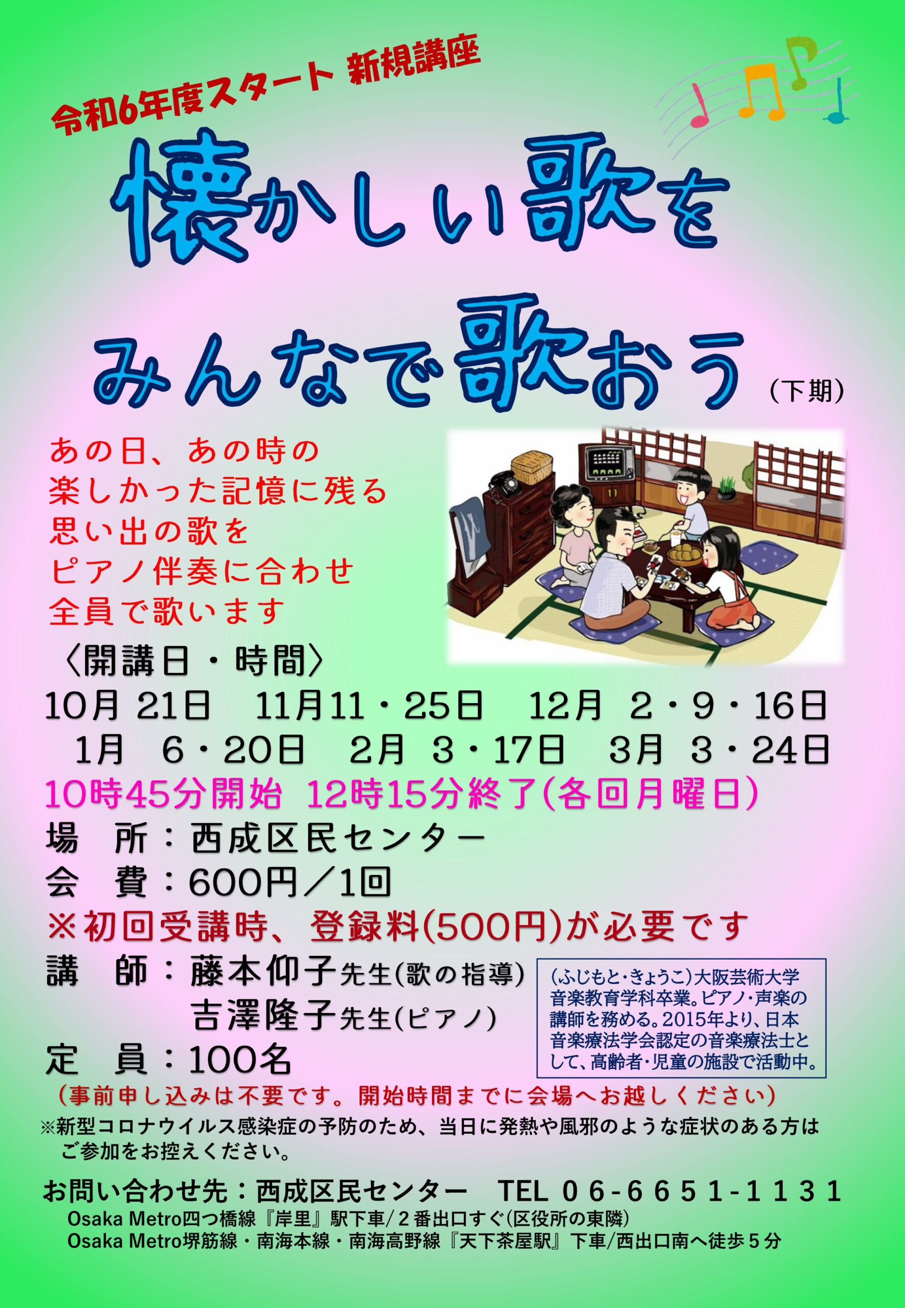 詳しくは西成区民センターまでお問い合わせください。 TEL:06-6651-1131