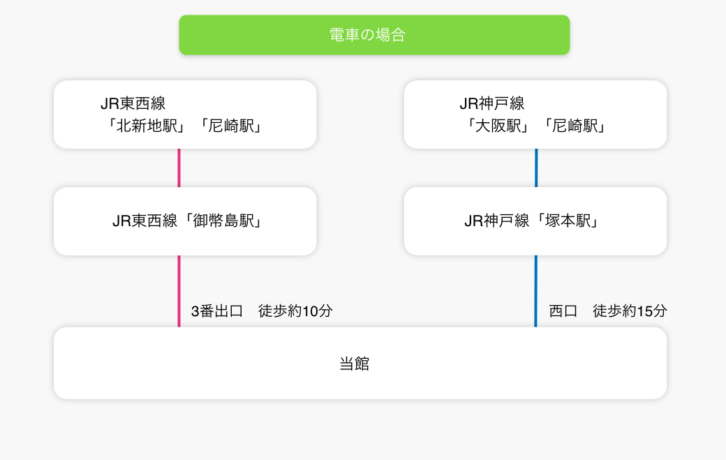 - JR東西線 御幣島駅 3番出口 徒歩約10分