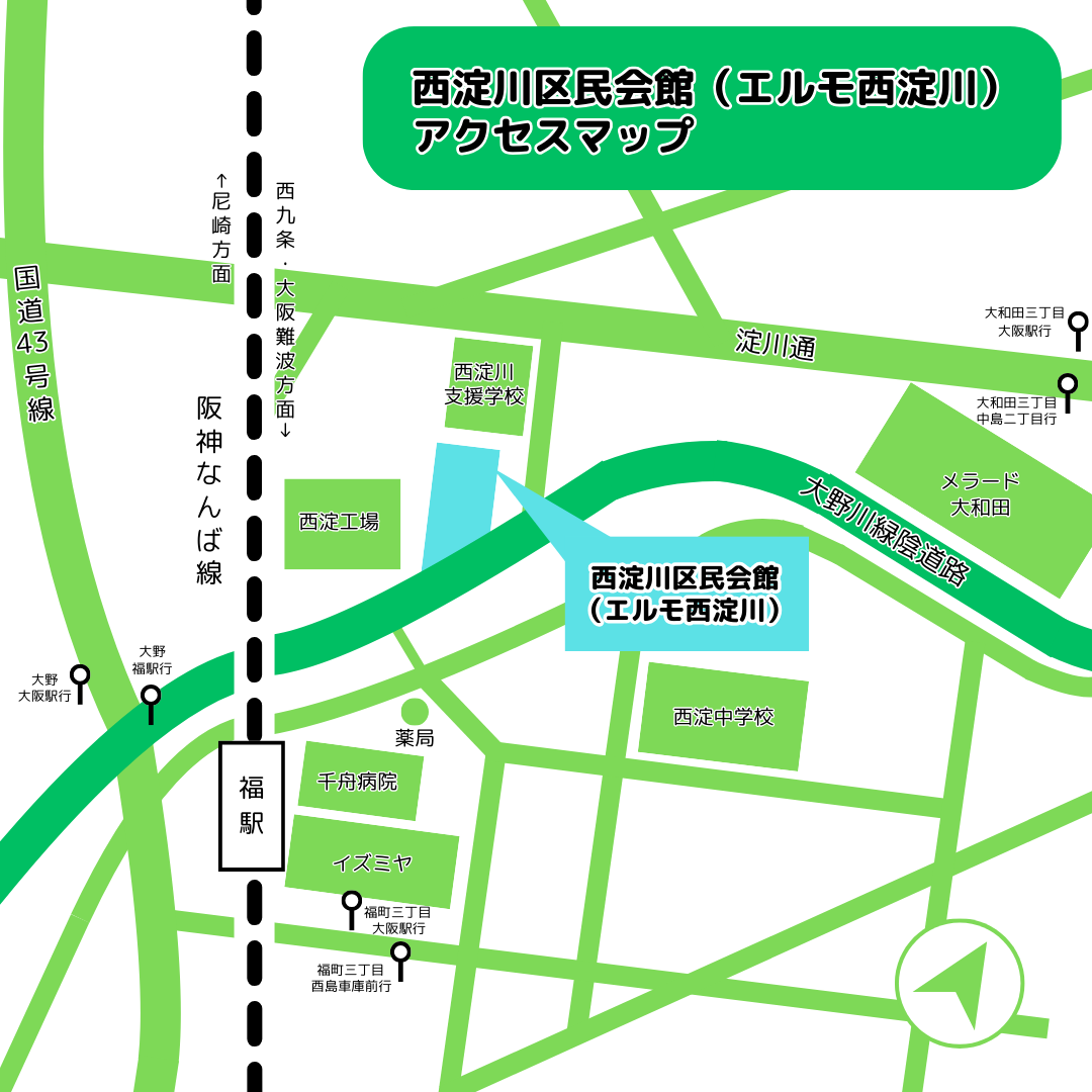 西淀川区には西淀川区民ホール(nishiyodogawa ward community hall)と西淀川区民会館(nishiyodogawa ward community kaikan)の2つの施設があります。