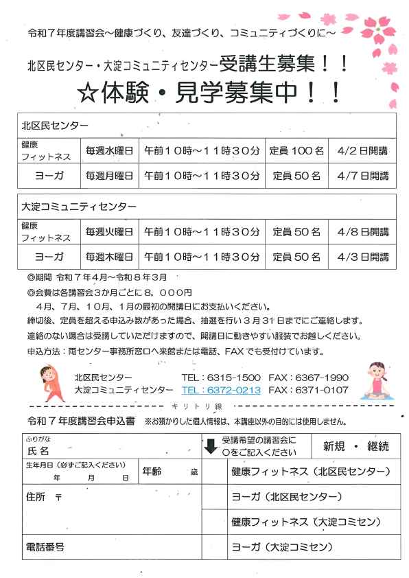 期間 令和7年4月 ~ 令和7年6月 【持ち物】開講日は動きやすい服装…