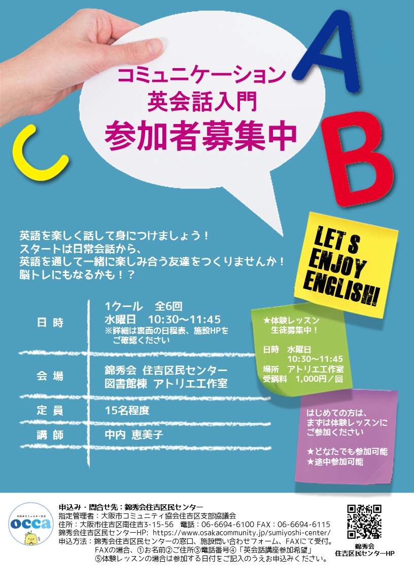 場所:錦秀会 住吉区民センター 図書館棟・集会室4