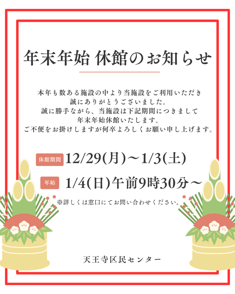 年末年始休館のお知らせ