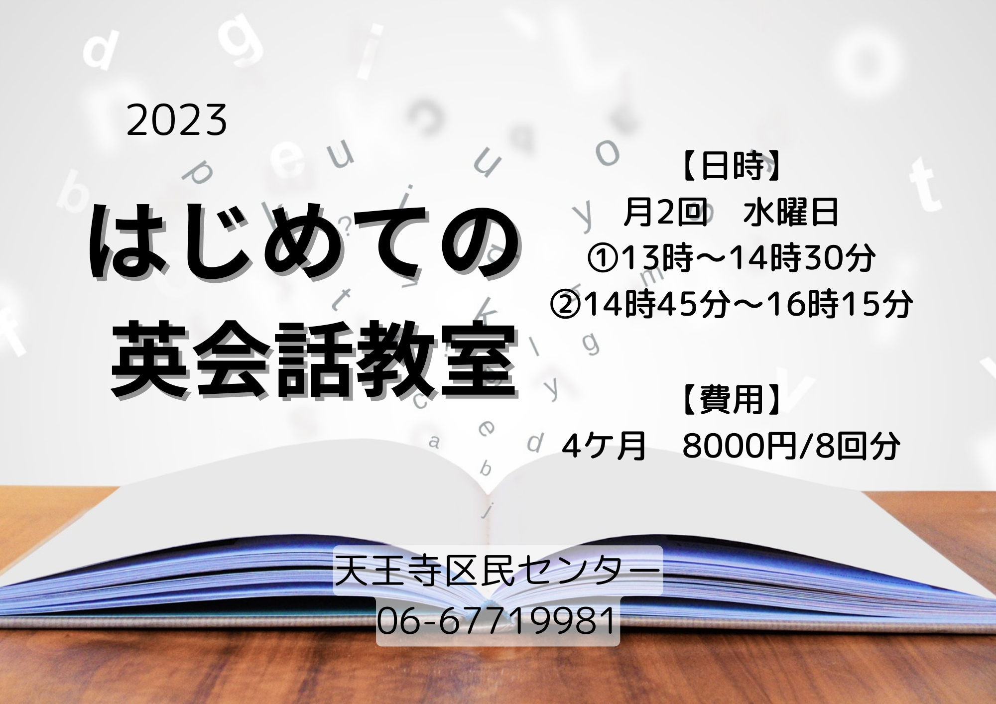 Warning: unlink(/home/xs868497/osakacommunity.jp/public_html/cms/wp-content/plugins/wp-scss/cache/style.css): No such file or directory in /home/xs868497/osakacommunity.jp/public_html/cms/wp-content/plugins/wp-scss/class/class-wp-scss.php on line 108 天王寺区民センターはじめての英会話教室 - 天王寺区民センターコンテンツへスキップナビゲーションに移動